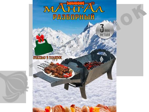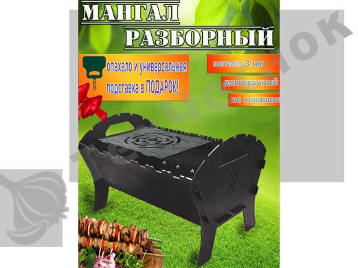 | Мангал разборный 3мм габариты 41.5x29x30.5 Вес-9.3 кг. Габариты в картонной упаковке 53x31x37 Вес-9.6 кг. Оптом от 10 шт, в розницу от 1 шт. Мы являемся производителями. Доставка транспортной компанией.: | Опт, розница. Расчет любым способом. |