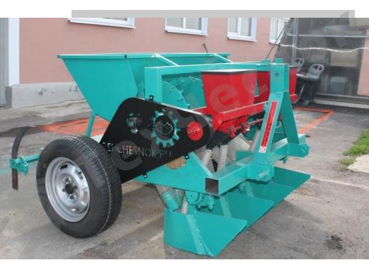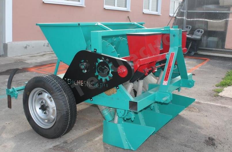 Сажалки для чеснока ЧСН-4УН, (далее сажалки) предназначены для рядовой посадки чеснока на предварительно обработанных и подготовленных грунтах. Обеспечивает быструю и качественную посадку откалиброванного чеснока с размером зубчиков 15-25 мм. Сажалка характеризуются высокой производительностью в два раза чем предыдущяя модель, простотой конструкции, удобством эксплуатации. Имеется возможность регулировки глубины посадки. Вибро дно. Могут агрегатироваться с трактором мощностью свыше 25 л.с,.